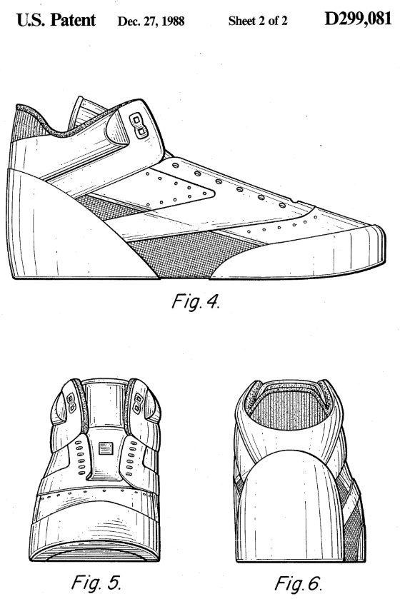 L.A. Gear, Inc. v. Thom Mcan Shoe Co., 988 F.2d 1117 (Fed. Cir. 1993) provides an example of a design patent (United States Design Patent No. 299,081) for a highly functional manufactured article with utilitarian features that still included patentable, ornamental features. The claimed shoe design included the shape and placement of decorative side panels, the configuration of the heel counter, the layered overlays, and the overall ornamental styling of the upper. See the image below. These are highly functional elements, but they included designs that were not dictated by function. The Federal Circuit explained that the key question with respect to functionality is whether alternative designs could perform the same function. The court upheld the design patent because the shoe’s aesthetic features, such as decorative overlays and overall visual styling, were not the only way to achieve athletic performance. If a product’s appearance is the only way it can work, design patent protection is unavailable, and utility patent law is the proper route.