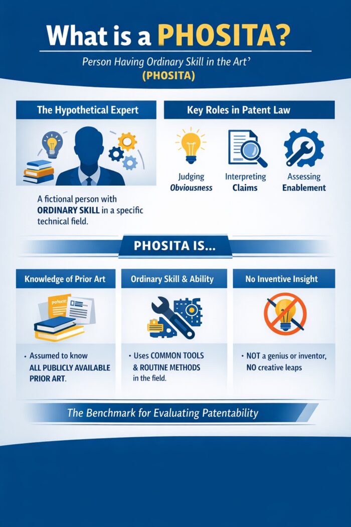 At its core, PHOSITA represents the “average skilled practitioner” in a given technical field, possessing ordinary skill, ordinary creativity, and ordinary knowledge at the relevant time, usually before the effective filing date of the patent application. Importantly, PHOSITA is not a genius, is not an inventor, and is not permitted to invent. Instead, this person skilled in the art is expected to follow conventional wisdom, apply known techniques in a predictable manner, and draw upon what was publicly accessible in the prior art.