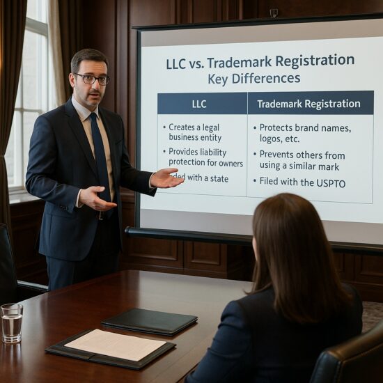 In summary, an LLC and a trademark are two distinct legal tools every entrepreneur should understand. An LLC is a business structure that protects the owners by separating the business’s liabilities from personal assets, while a trademark is an intellectual property right that protects the brand by granting exclusive rights to use a name or logo and preventing others from using confusingly similar identifiers. For comprehensive protection of a new business, you would ideally leverage both the LLC for liability protection and the trademark for brand protection.